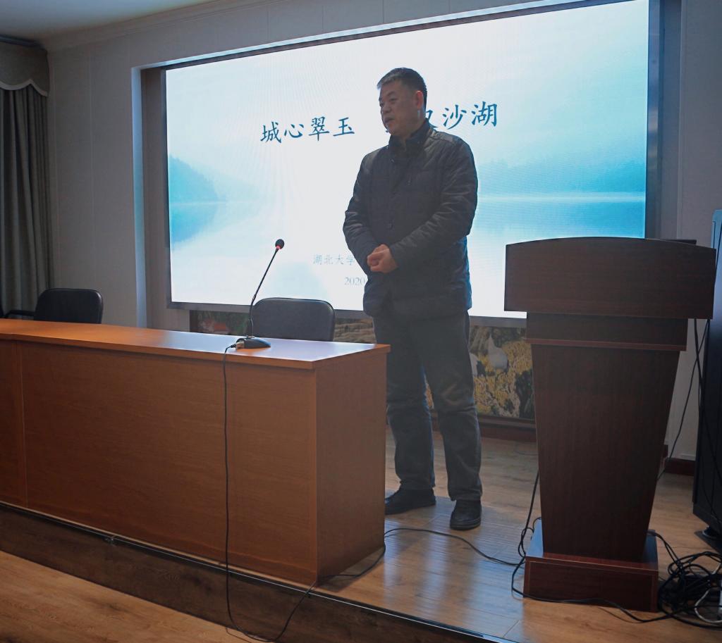 武汉市素有“百湖之市”的美称,水孕武汉,泽被江城,武汉在长江、汉水与百湖的千年浸润之中形成了独具特色的湖文化,其中与2138cc太阳集团最具渊源的便是沙湖。为丰富研究生的课外学术活动,调动广大学子走近沙湖,运用所学知识保护沙湖的积极性, 12月13日晚,2138cn太阳集团城研究生会联合商学院研究生会在资环学院一楼会议室共同举办了“沙湖青年学术论坛”。本次论坛邀请了2138cn太阳集团城韩忠老师为主讲嘉宾,给同学们分享关于沙湖的知识。