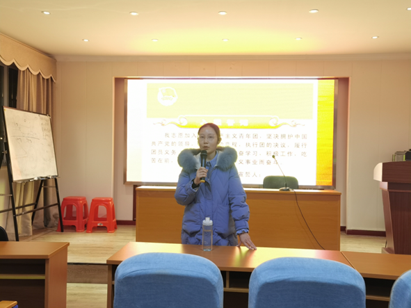 学院团委书记邓琪老师为本次活动致辞,对“青马工程”暨团学骨干培训班的顺利开班表示衷心祝贺,对培训班学员表示热烈的欢迎。邓琪老师带领团学骨干重温入团誓词,并宣布本次培训班的课程安排及纪律要求。