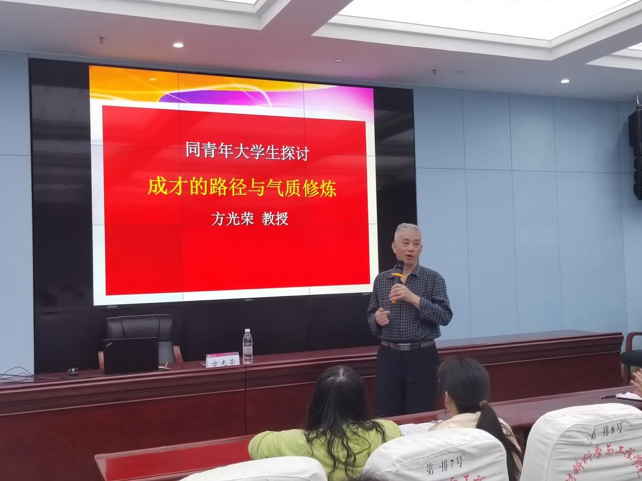 4月25日,2138cc太阳集团老教授协会负责人方光荣教授为学员们作《成才的路径与气质修炼》专题报告,向学员们介绍成才的基本路径与自我修养的建议。