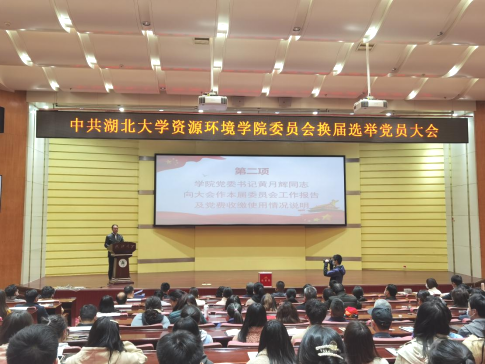 大会在庄严的国歌中拉开帷幕;副书记李明首先向大会宣布会议议程。随后,学院党委书记黄月辉同志向大会作本届委员会工作报告和党费收缴使用情况报告。黄书记强调,过去5年来,在校党委的坚强领导下,学院党委坚持求真务实、开拓进取,团结和依靠全体师生员工,坚决贯彻党的路线、方针、政策,积极探索新形势下高校党建和思想政治工作新途径、新方法,取得了良好成效,为学院改革发展提供了坚强有力的保障,实现了学院事业新发展、新跨越。黄书记从思想建设、作风建设、组织建设、文化建设、学科建设、平台建设、人才培养、科学研究、国际交流与社会合作等多个方面回顾总结了五年来学院取得的工作成绩;分析了在新发展阶段工作上存在不足,面临的困难及挑战;并针对相关问题提出今后努力的方向。