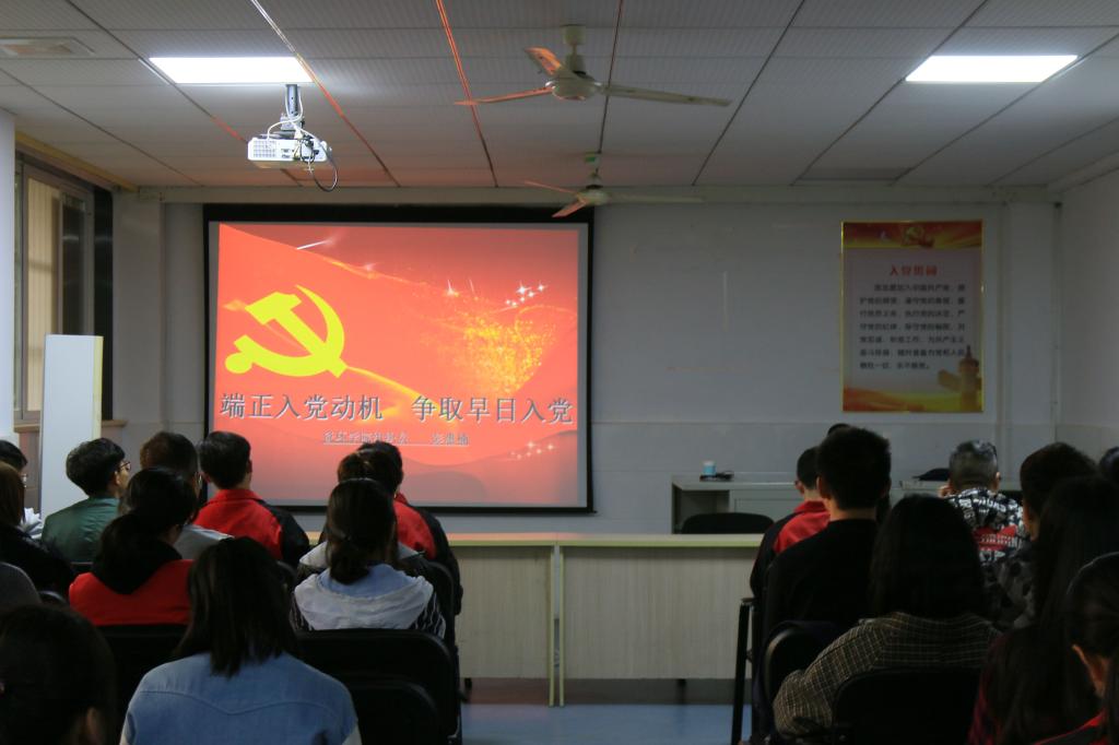 党培班第一课,校党建组织员彭惠楠以“端正入党动机,争取早日入党”为主题,为入党积极分子即将开启的党员成长之路“系好了第一颗扣子”,指明了正确方向。院团委书记王文锋将正式党员与入党积极分子聚在一起,从习近平总书记在党的十九大上所作的报告出发,突出强调了“从严治党”的问题。院党委副书记李明则从十九大最新修订的《中国共产党章程》切入,围绕在新时代党对全体党员的新要求,号召入党积极分子以正式党员的标准严格要求自己,向党组织看齐。马克思主义学院副教授郭劲松在与同学们的交流中,重点谈到了理想信念的问题。他通过讲述不同年代的老共产党员的故事和自己的学习研究经历,使同学们在轻松愉快的课堂气氛中不断深化对马克思主义的认识。