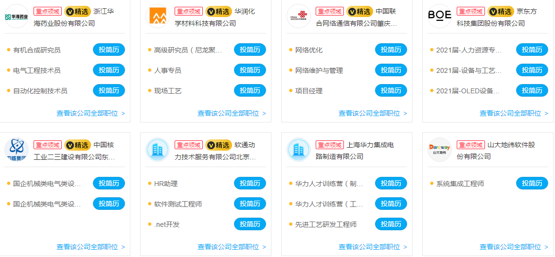 为贯彻落实党中央、国务院“稳就业”“保就业”决策部署和2021年全国两会精神,促进高校毕业生面向战略性新兴产业就业创业,教育部、国务院国资委决定举办战略性新兴产业面向应届高校毕业生网络招聘会。活动时间为2021年5月14日至2021年6月14日。 部分招聘单位截图如下: 战略性新兴产业链接:https://job.ncss.cn/student/jobfair/fairdetails.html?fairId=71YhoWuvihSYZGGVY3uzPn